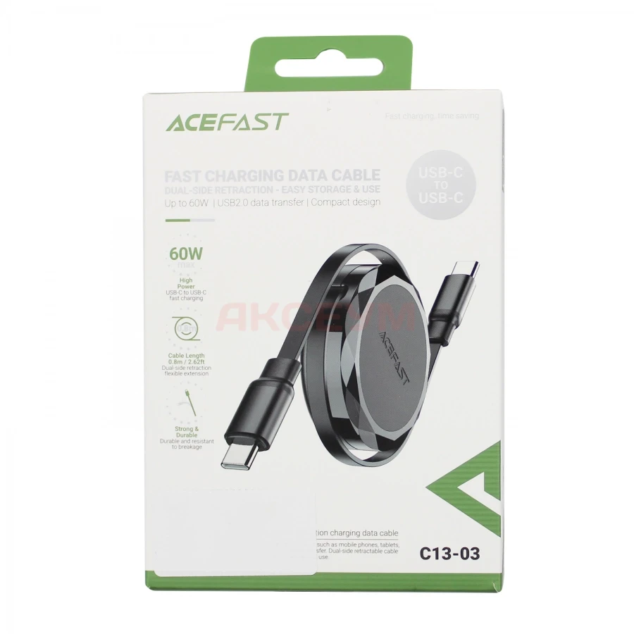 Кабель Type-C - Type-C Acefast С13-03 (3A/60W/PD/0.8 м/двойное втягивание) черный